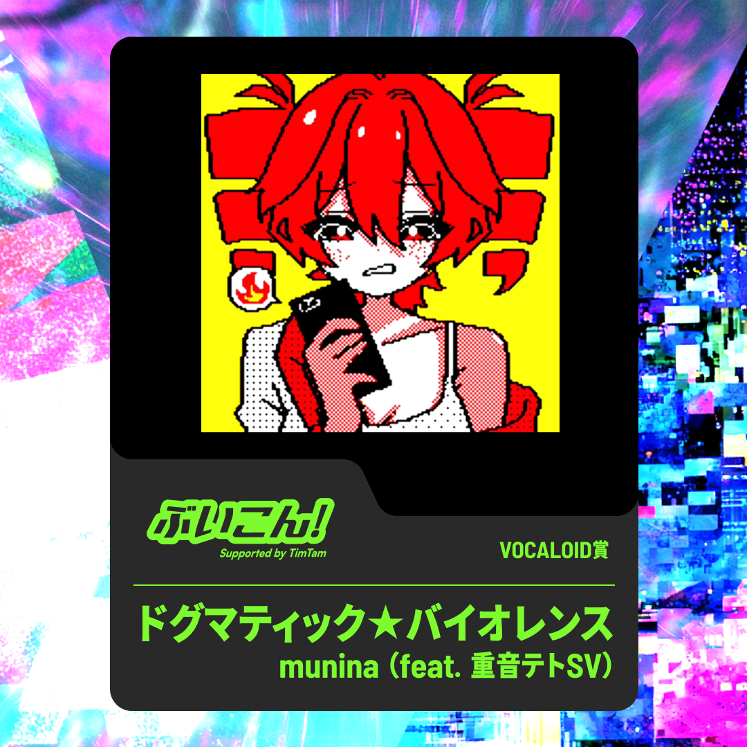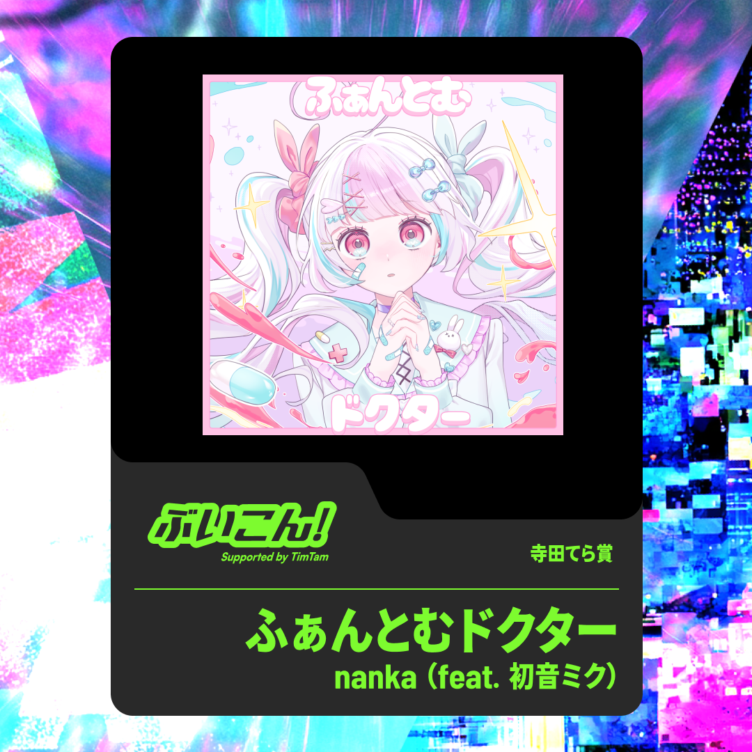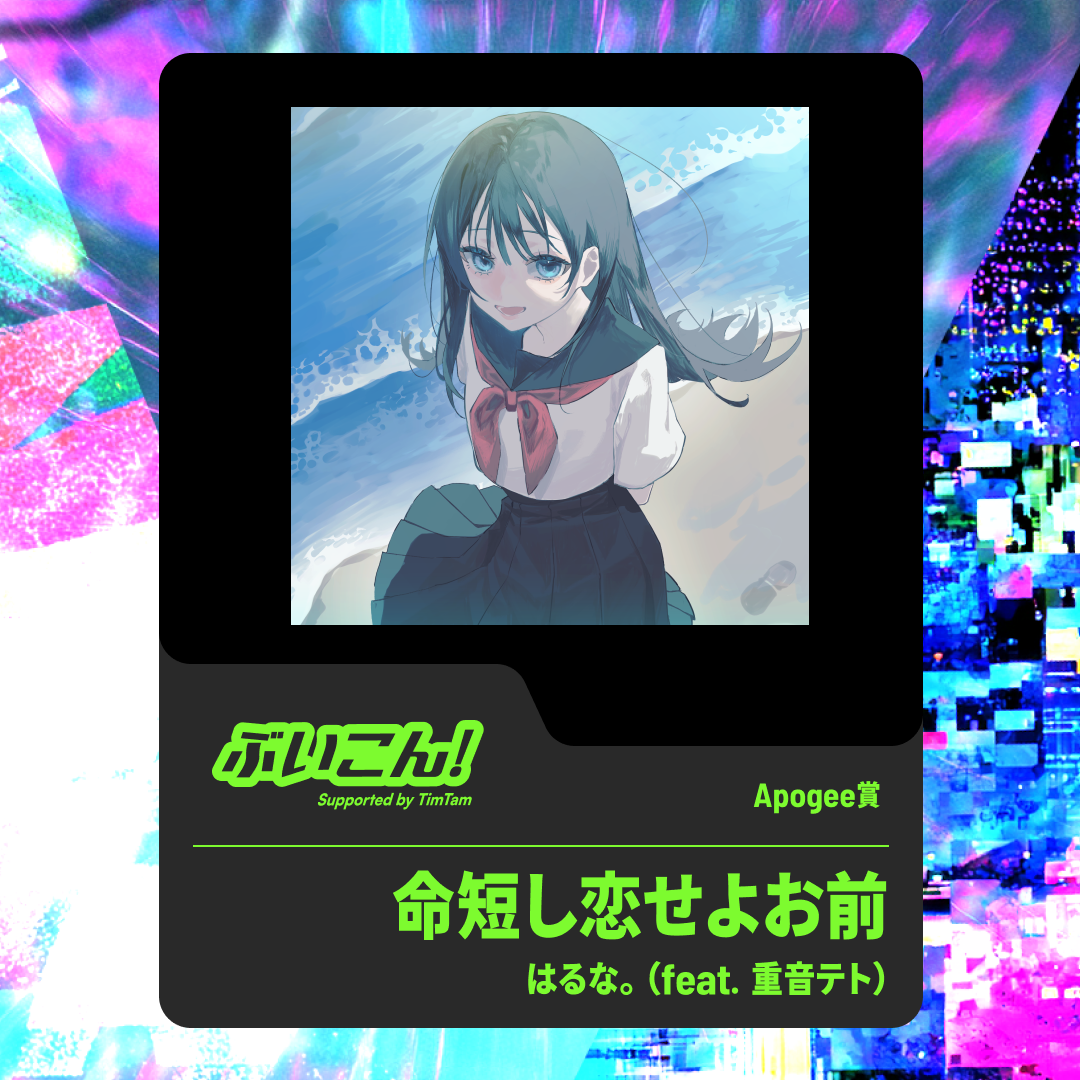 かめりあと申します。この度、TuneCore Japanさんで開催の『ぶいこん!supported by TimTam』特別審査員賞審査員を担当させていただきました。多くのご応募をいただき、自分としても大きな刺激を受けながら拝聴、選定させていただきました!改めまして、ご応募のほどありがとうございました。さて、まずは選定に当たって、「ワイが好きな曲は……コレやな!」で決めてしまわないよう、あらかじめ評価の基準を決めてから楽曲を拝聴しました。評価の基準となったのは、「メロディ(作曲)」「歌詞」「編曲」「調声(ボーカロイド打ち込み)」「楽曲構造」の5項目です。メロディについては、自然さ、インパクト、覚えやすさ。歌詞については、メロディとの一体感、歌いやすさ、韻や隠れたテーマを含んだテーマ設定、そして語彙といった文字表現が評価されます。編曲は、音の良さ、ミックス、インストゥルメンテーションのテクニック、細かい点まで配慮された総合的な仕上がりが評価の対象となります。調声は、ボカロである必要性を含めた活かし方や、必ずしも人間的ではなくても構いませんが、最終的な自然さ、ボカロ楽曲としての良さに着目し、最後に楽曲構造として、重要なイントロ・ツカミや、展開の緻密さと自然さ、コードワークのセンス、そして面白い展開でリスナーを引き付けるダイナミックさを評価しています。なお、ギターソロやその他の楽器のソロ(トロンボーンのソロがございました!良いですね)については、私が好きなので贔屓点+1をプラスしています(そんなに大きな点差ではないです)。前置きが長くなってしまいましたが、この基準を念頭に評価をさせて頂きました結果、シンナイコウジさんの「UFOにのって (feat. 音街ウナ)」を特別賞として選定させていただきました!出しゃばらないのにイントロから耳を引くおしゃれでテクいコードワークや、刻み・ソロ、どちらも技術の高さを感じるギターのフレーズにグッと心を掴まれました。全体としても絶妙にレトロで懐かしさを覚える曲調、かつ古びているだけではない一周回った大人びた雰囲気の楽曲に、ウナちゃんのボーカルが非常に良く合っていると感じます。そのボーカルに合わせるのは、決して速すぎない快適なテンポのトラック。細かく挟まれる同音連打の多いメロディが聴いていて素晴らしいです。サビではU・F・Oと4分音符で歌わせるフレーズ、そしてバックコーラスとの掛け合いが、一緒に歌いたくなってしまうような流れを持っていて、作詞面でも1番サビ「ヘロー/ヘイロー」と2番サビ「ベロ/ゼロ」で一曲を通して韻を踏んでいるのが作詞・作曲力の高さを物語ります。そして「言うまいな」と「Dマイナー」で踏みつつ、しっかりこのフレーズではDマイナーを鳴らしているのは卑怯だ、という事を言っておかなければなりません。凄い。これB♭マイナーとかで曲作って後から+4!ってした訳じゃないですよね。いやBマイナーでも踏めるか。全体にバランスや技術、色々な点から、改めて凄い!と拝聴後に感じた楽曲でした。今後も個人的に楽曲を聴いて勉強させて頂きます。素晴らしい楽曲をありがとうございました!