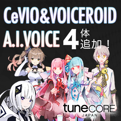 この度、株式会社THINKRが提供するCeVIO AI 「可不」、CeVIOプロジェクトが提供する 「さとうささら」、株式会社エーアイが提供するVOICEROID・A.I.VOICE 「琴葉茜・葵」「伊織 弓鶴」が TuneCore Japan に登場しました!キャラクター名と2次創…