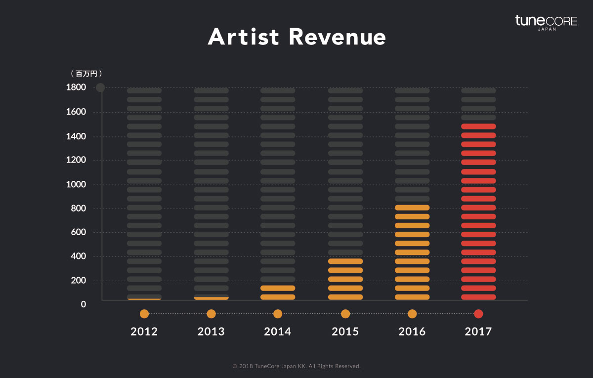 デジタル音楽ディストリビューションサービス「TuneCore Japan」によるアーティストへの還元額が、現時点で30億円を突破致しました。2017年度では約15億円(前年比183%)をアーティストに還元しており、サービス開始から6年連続で増加しております。 …