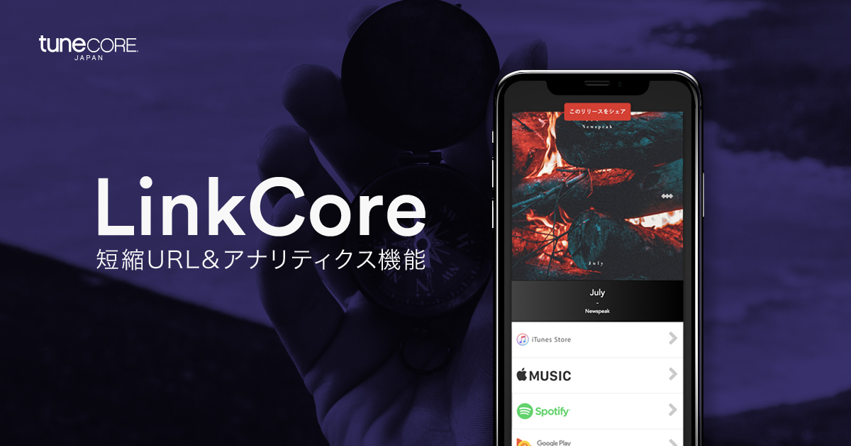 TuneCore Japanでは、本日より新機能「LinkCore」の提供を開始いたしました。 今回の新機能「LinkCore」では、TuneCore Japanを利用して楽曲を配信しているアーティストは、楽曲に紐付いた各音楽配信ストアでの複数のURLを…