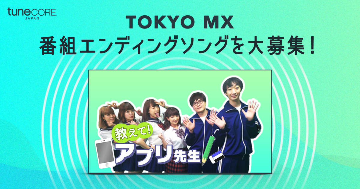 この度『TOKYO MX』で放送中の最新スマホ情報バラエティ番組「教えて!アプリ先生」のエンディングソングを、TuneCoreより配信中の楽曲限定で募集します!