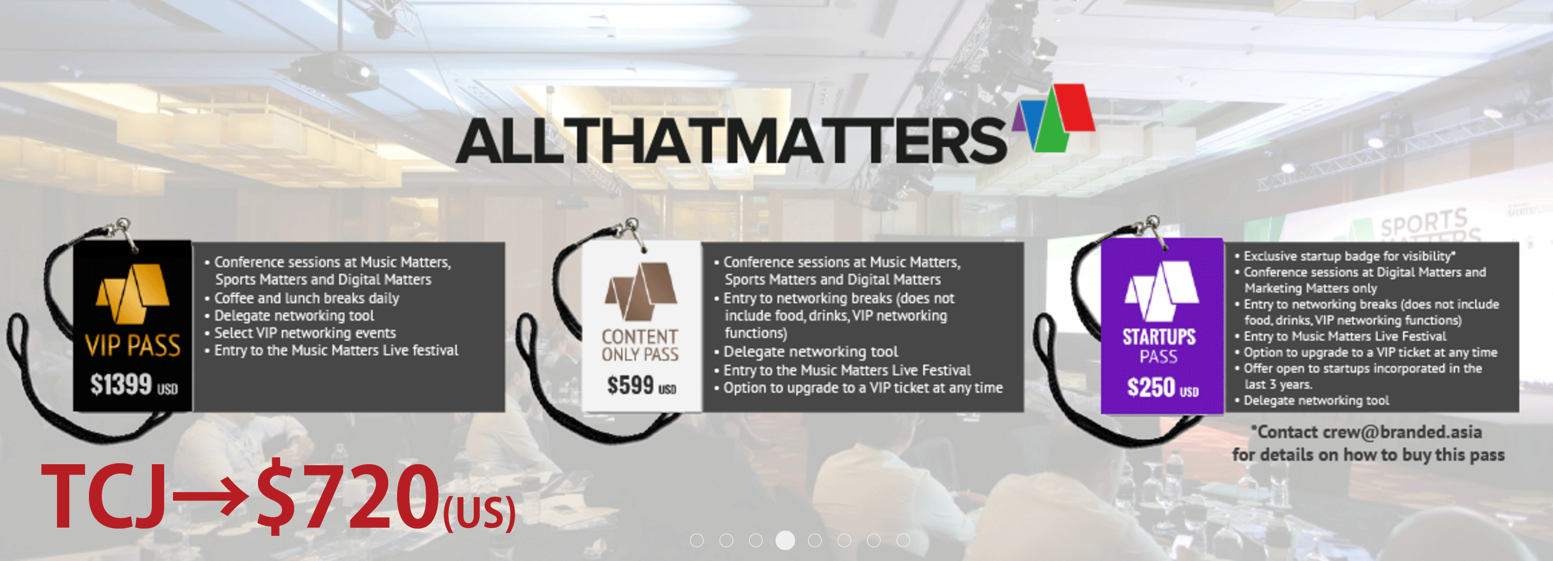 600社以上が毎年参加する、アジア最大級のエンタメ イベント "ALL THAT MATTERS 2016"が9月12日〜15日@シンガポールにて、今年も開催されます!まだまだ国内では知名度が低いかもしれませんが、 "ALL THAT MATTERS"は、これからのエンターテイメント市場にとって決して無視することのできない”アジア地域”の”エンタメ最重要人物たち200人"がスピーカーとして揃い、600社も世界50カ国から参加する世界でも稀有なイベントなのです!