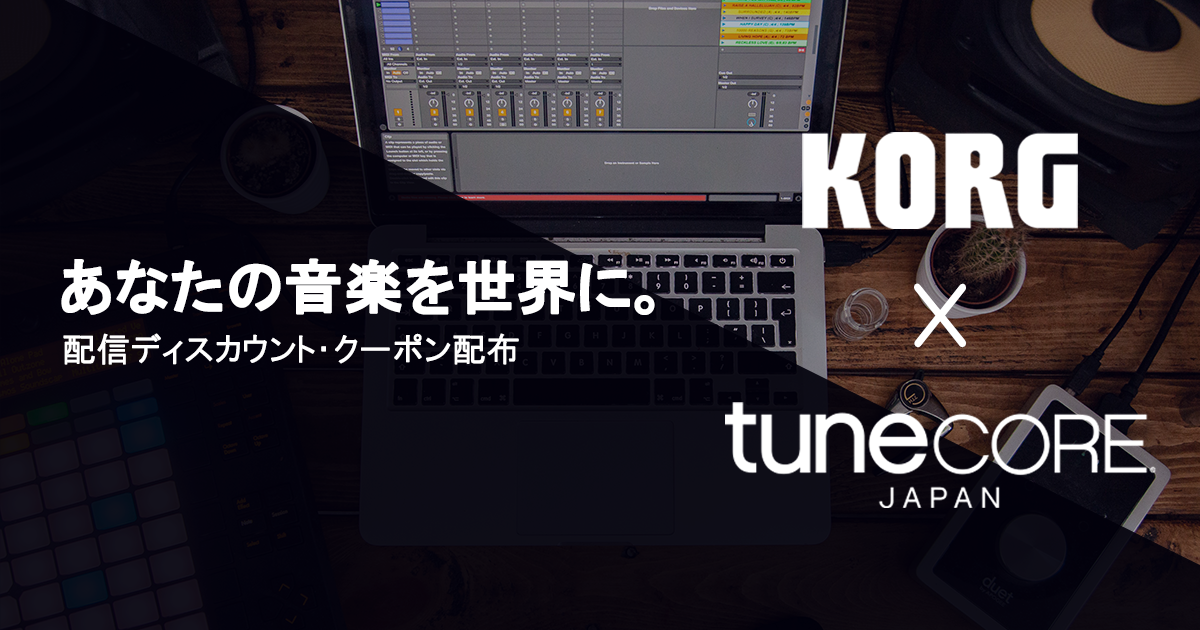 TuneCore Japanは、インディペンデントアーティストを支援する取り組みとして、株式会社コルグとのコラボレーションを開始しました。音楽のインスピレーションを刺激するサウンドを作ってきた株式会社コルグ。同社が提供する、KORG Software BundleにTuneCore Japanの配信ディスカウントクーポンが追加され、対象のMIDIコントローラーやシンセサイザー製品を購入するとシングル/アルバム1年間配信半額クーポンが付いてきます。