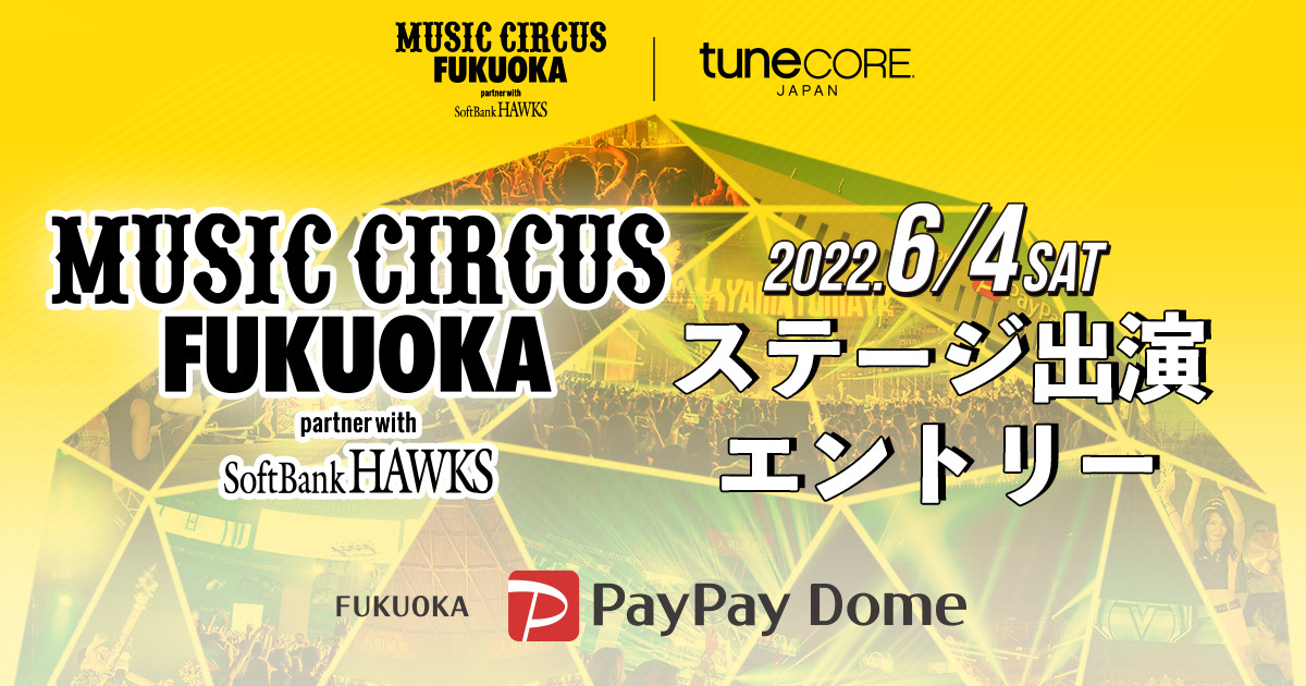 2022年6月4日(土)に福岡PayPayドームにて開催される「MUSIC CIRCUS FUKUOKA partner with SoftBank HAWKS 2022」とTuneCore Japanがコラボレーションしたステージ出演エントリーの結果が発表されました。