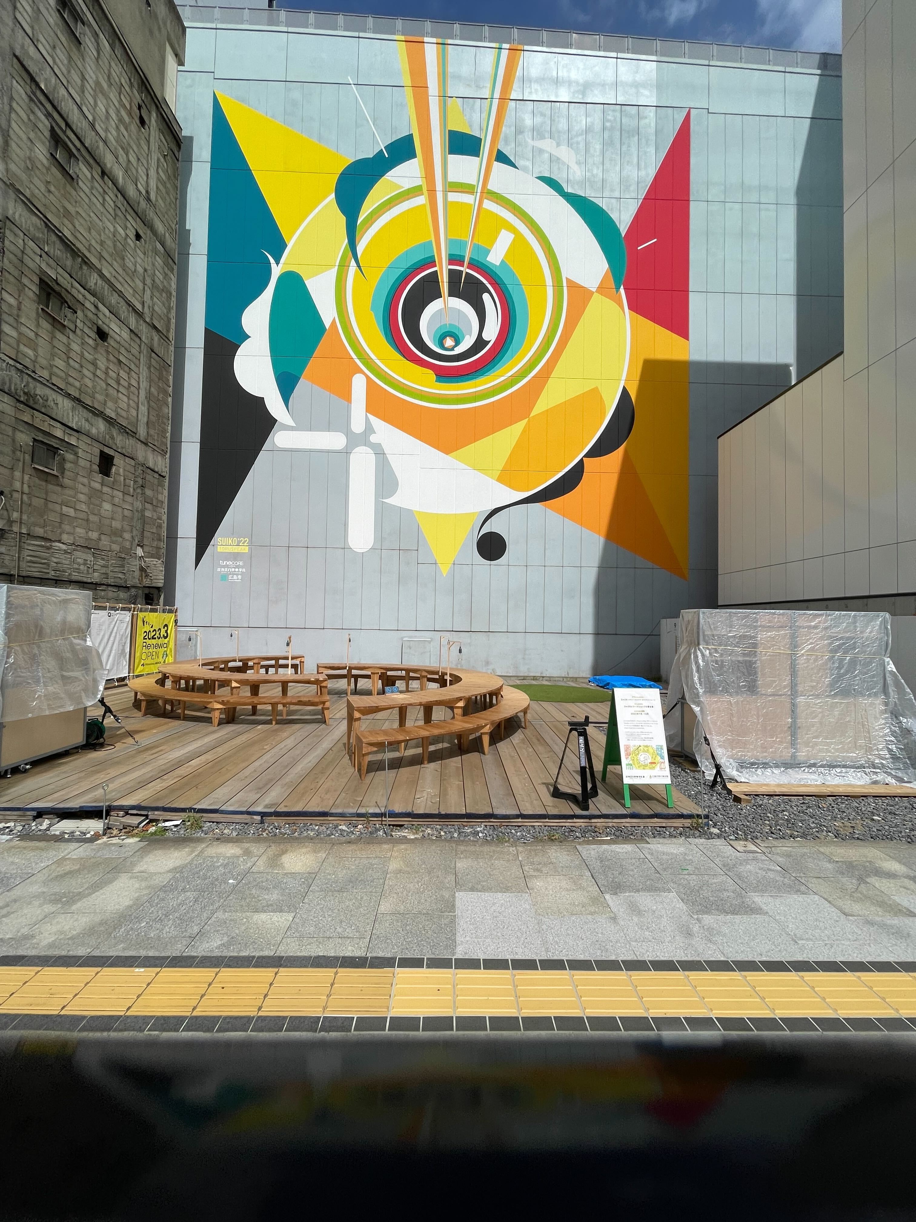 先日、広島市紙屋町八丁堀地区で活動をしているエリアプラットフォーム「カミハチキテル-HEART OF HIROSHIMA-」が行う2022年度の社会実験「カミハチキテル3-URBAN TRANSIT HUB-」にTuneCore Japanも参画し、「ツカノマテラス」(広島市中区鉄砲町10-9)にて10月末まで巨大壁画を掲出しました。