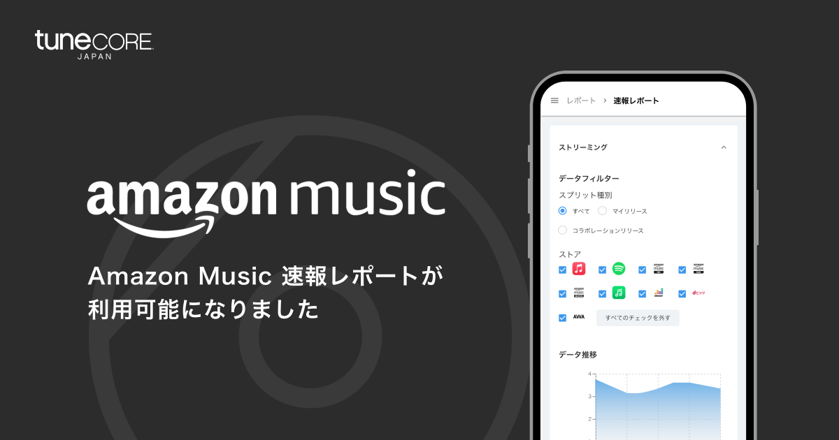 本日より、速報レポートのストリーミング対象項目に下記の配信ストアが追加になります!