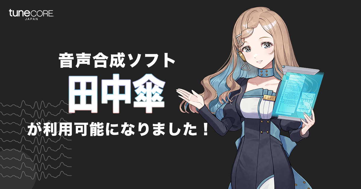 このたび、株式会社テクノスピーチが提供する音声合成ソフト「田中傘」が TuneCore Japan に登場しました!当サービスを通じて、誰でもキャラクター名と2次創作によるキャラクターデザインを利用したオリジナル楽曲を、ストリーミング配信・ダウンロード販売 (商用利用) が可能になります。