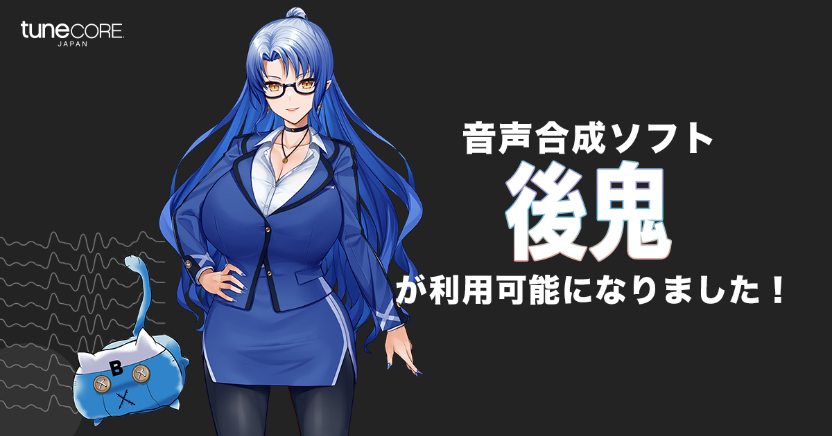 このたび、合同会社如月庵が提供する音声合成ソフト「後鬼」が TuneCore Japan に登場しました!当サービスを通じて、誰でもキャラクター名と2次創作によるキャラクターデザインを利用したオリジナル楽曲を、ストリーミング配信・ダウンロード販売 (商用利用) が可能になります。