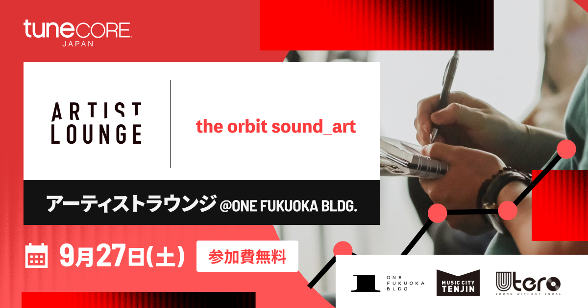 その一環としてこの度、福岡で開催される『the orbit sound_art powered by TuneCore Japan』にて、アーティスト向けのワークショップ “アーティストラウンジ” を開催いたします。