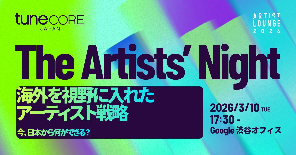 - 日程:2026年 3月10日(火)17:30〜21:00(来場者は、終了後に他のアーティスト、及び YouTube Music / TuneCore Japan 社員参加予定の懇親会にご参加いただけます。)